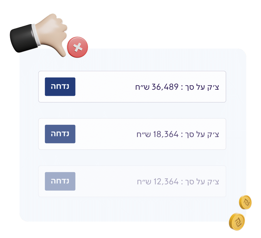 התמחור מותאם לפי היקף הפעילות של העסק שלך. אין עלויות קבועות או חבויות – אתה משלם רק על הצ'קים שאנחנו מאשרים. במהלך שיחת ההיכרות נציג שלנו יכין לך הצעת מחיר מדויקת.